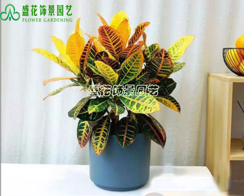 化和七彩斑斓的叶色让人们赞叹不已。盆栽用它摆放宾馆、商厦、银行的大堂,可显示典雅豪华的气派。数盆点缀居室和小庭园,呈现出一片欣欣向荣的景象。由于不甚耐阴,在室内观赏时间不宜超过2~3周。在南方还适合于庭院布置,其叶还是极好的花环,花篮和插花的装饰材料。盆栽变叶木在贮运过程中对乙烯不敏感,在16~18℃温度和80%~90%相对湿度下,能忍耐黑暗30天。